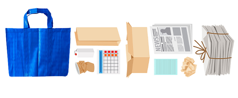 • Bin liners, Newspapers, Plastic items, Sachets